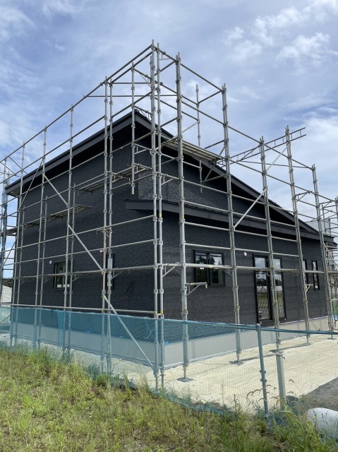 足場の奥にカッコいい外観がみえますね!