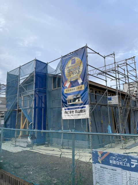 先日上棟した水戸市開江町のお家は、耐力壁面材が施工されました。
