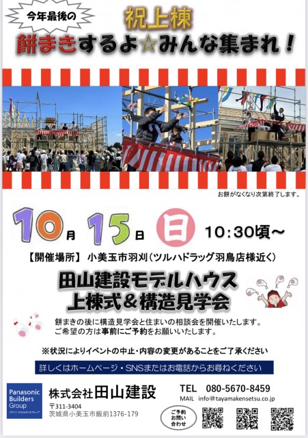 15日は上棟祝の餅まきの日だというのに天気予報は朝から雨なんです。