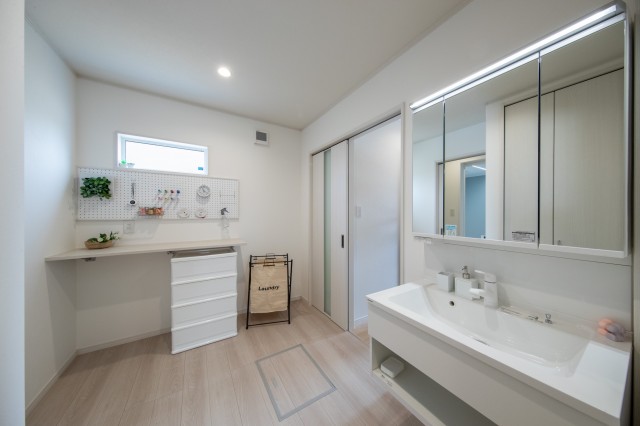 洗面スペースはランドリールームと同じ部屋にあります!