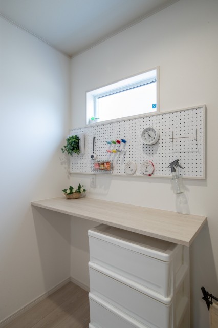 洗濯物をたたんだりアイロンをかけるためのカウンターは作業しやすいように床から90センチの高さにしました!