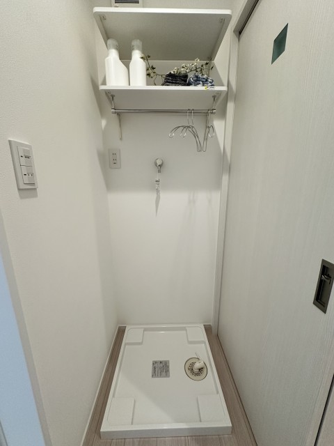 洗濯機の上スペースにはランドリー棚をつけました。