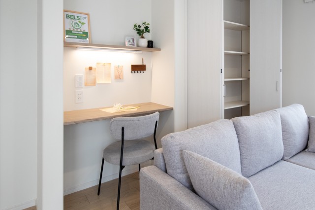 すぐ傍に収納があるので、書類などもサッと片付けられるから急な来客でも安心です。