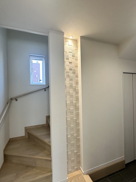 玄関の壁にエコカラットをはりました。