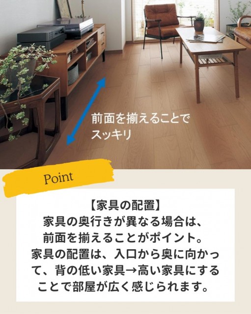 家具の奥行きが異なる場合は、前面を揃えることもポイント。