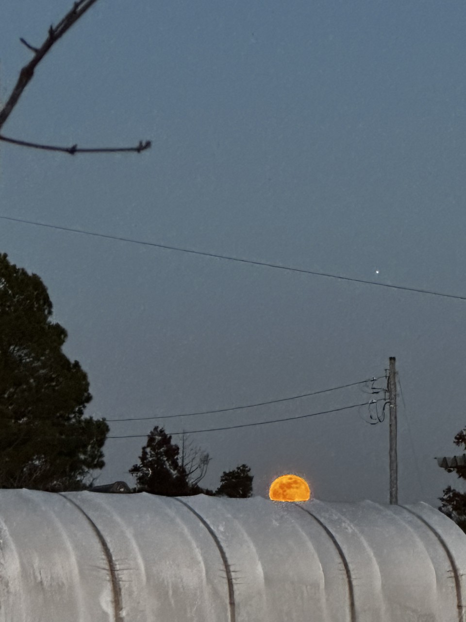仕事終わりに東の空を見たらまんまるお月様が登り始めるところでした。