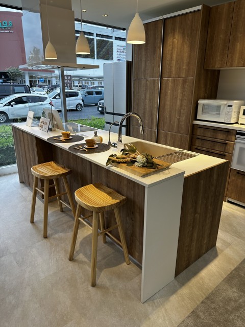 造作の腰壁もできるけれど、キッチンとおなじ素材でコーディネートできるデュアルトップ対面はとってもオシャレでいいな~と思ったのでした!