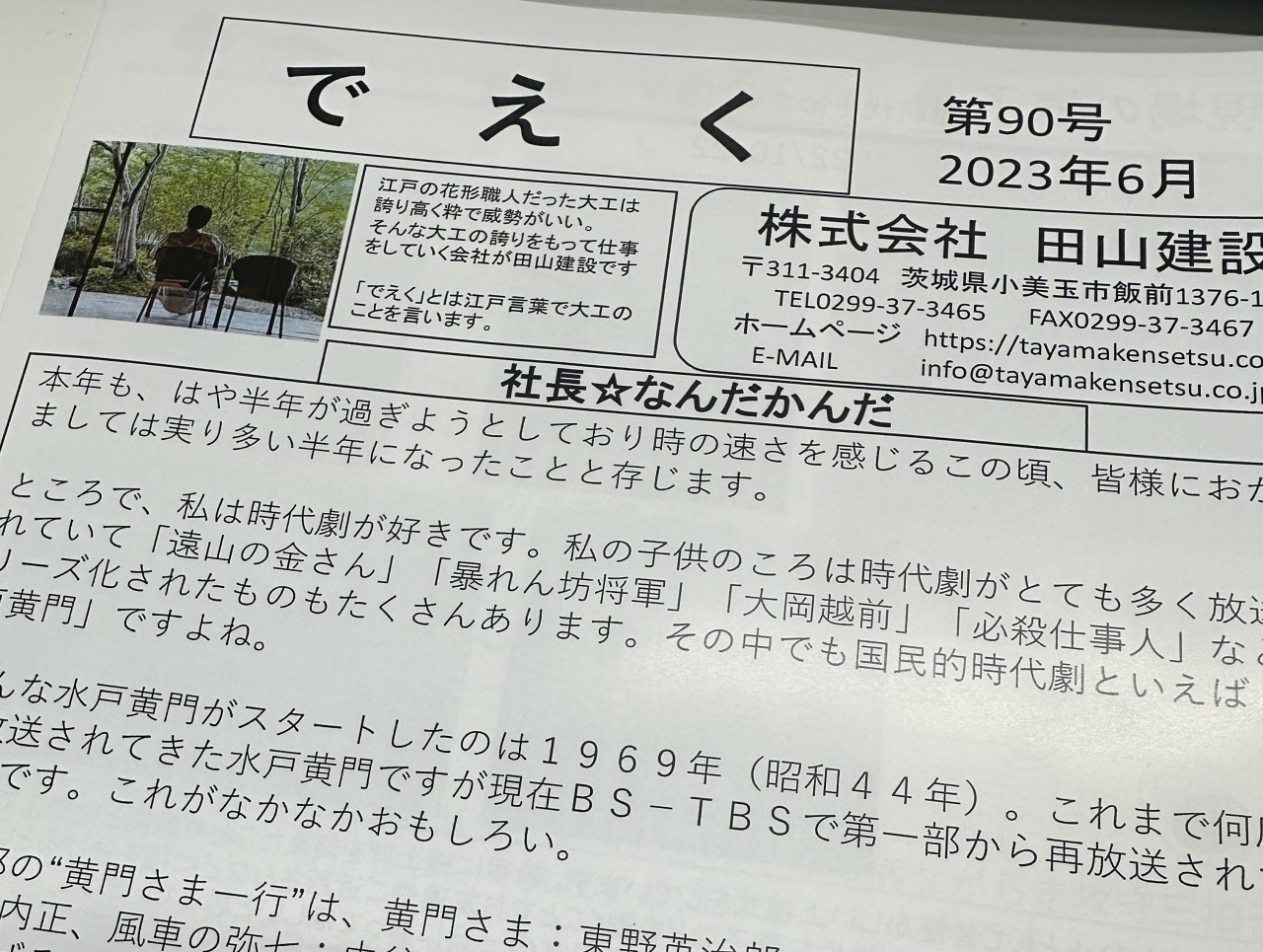 田山建設手づくり情報誌「でえくVol.90」本日発送いたしました。