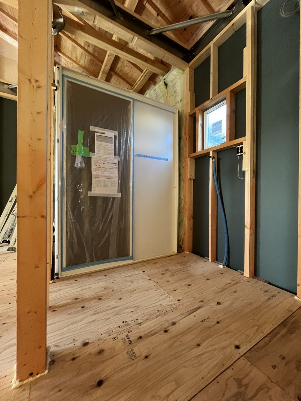 ユニットバスが施工されました。ユニットバスは工事が始まると早い段階で施工されています。