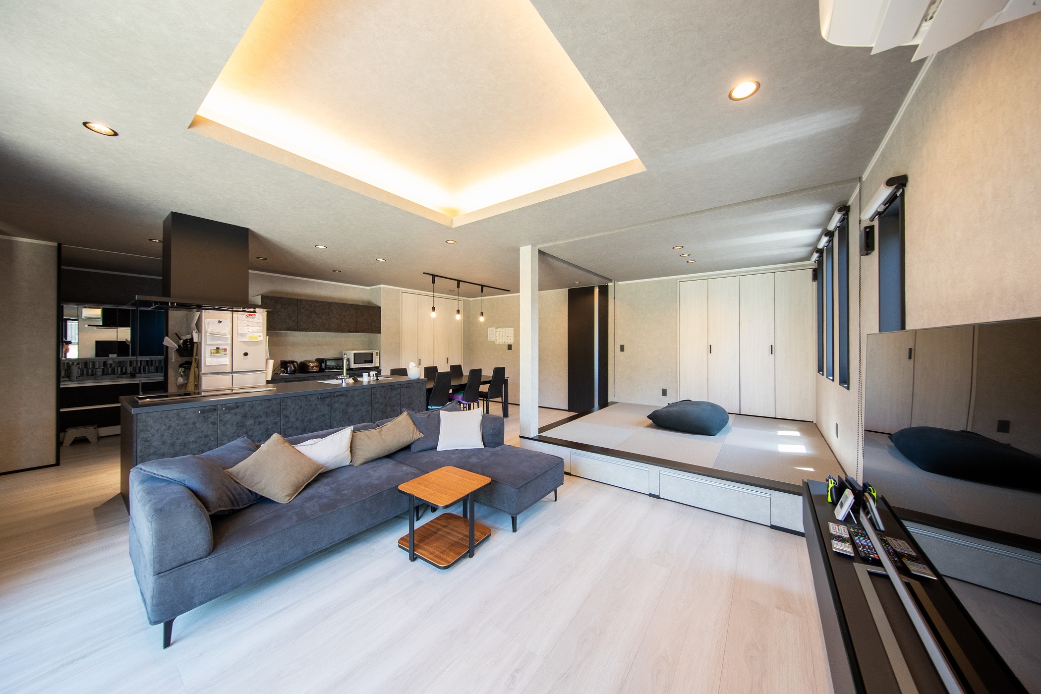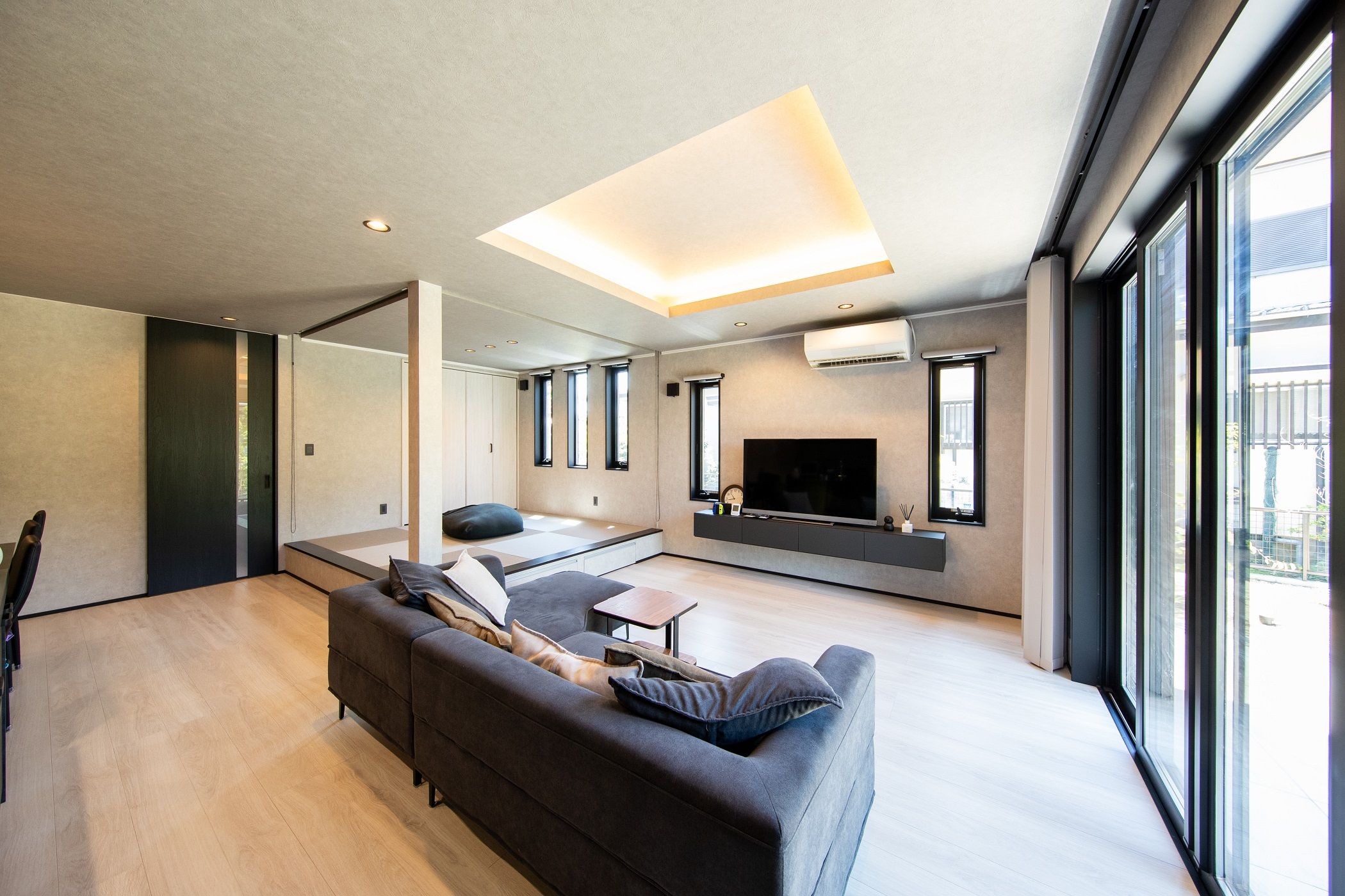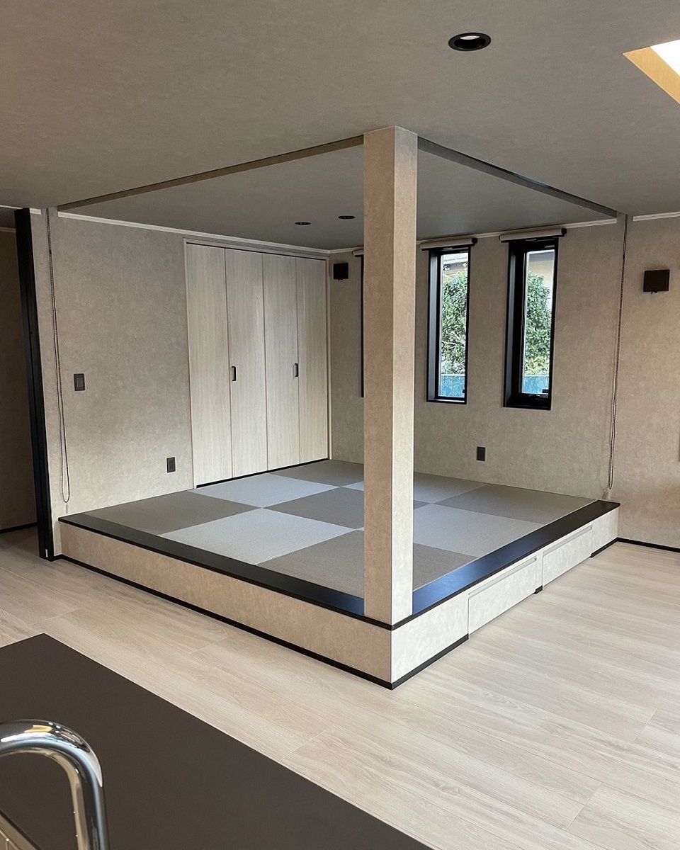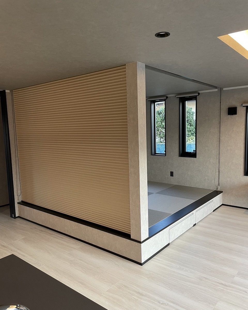リビングの一角に小上がりの和室。普段はリビングと一体ですが・・・