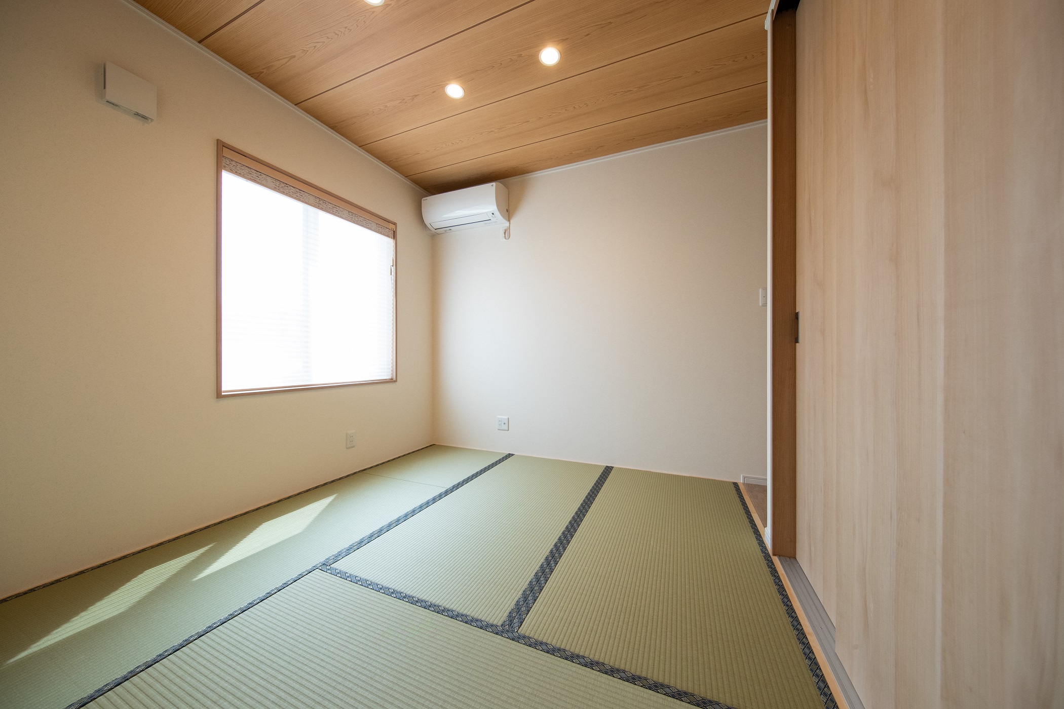 落ち着いた趣の和室。天井はまるで本物の板のようなクロス