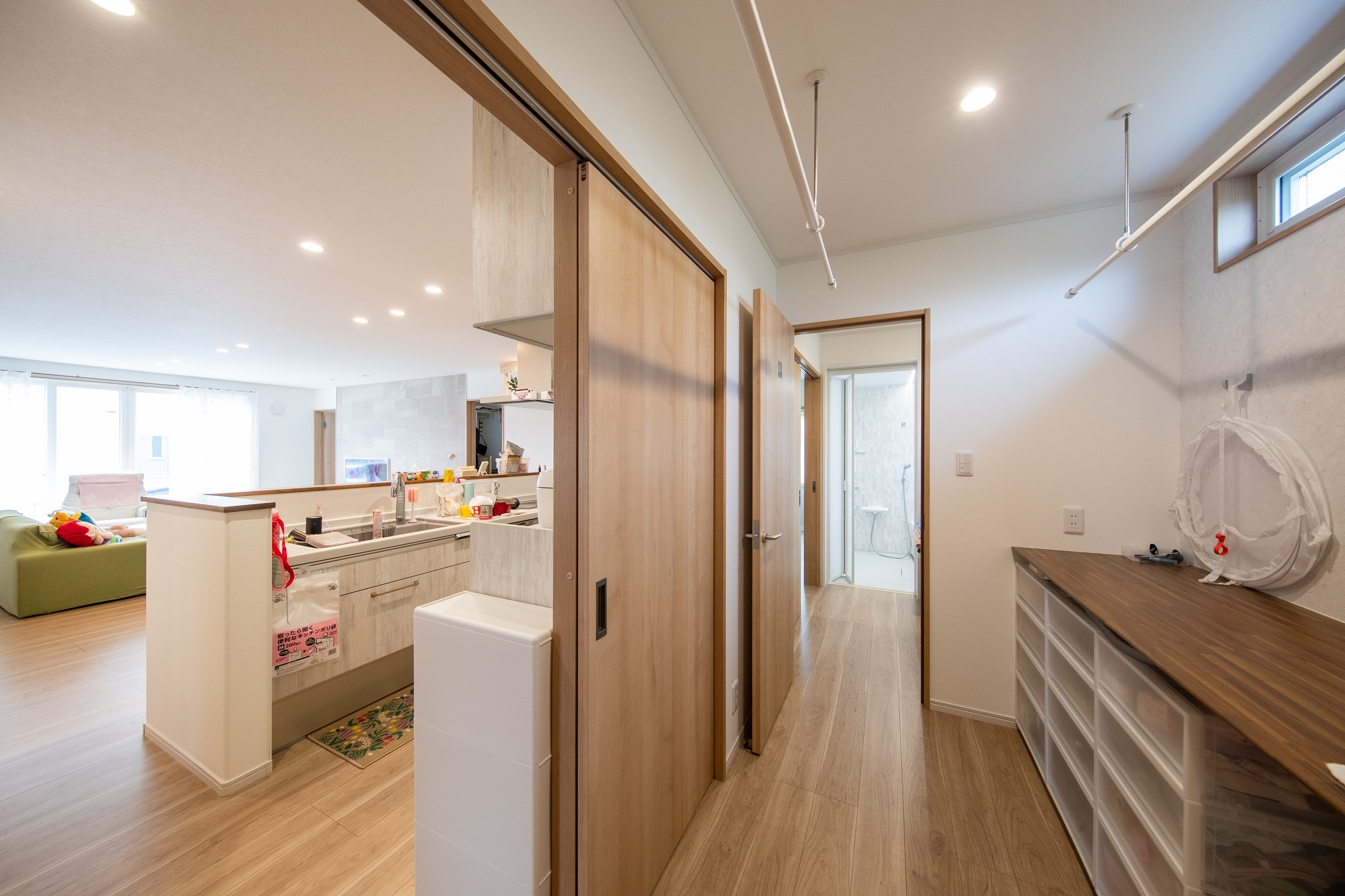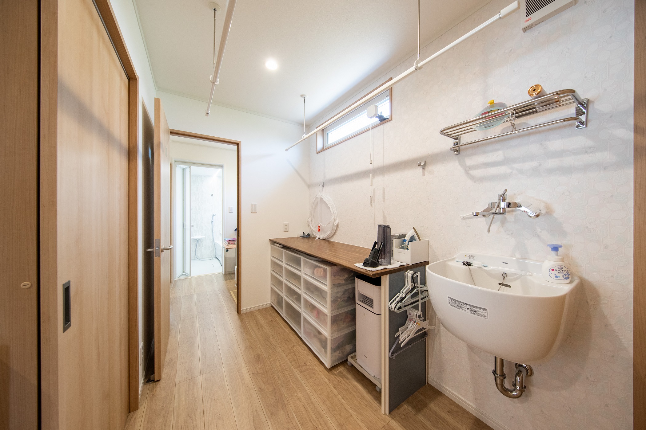 玄関ホール、ランドリーと直結の脱衣室