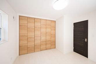 収納扉には、木の温もりをプラス。 陽光がたっぷり降り注ぐ、優しさあふれる空間です。