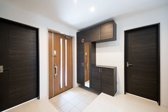 開放感あふれる玄関。大容量の下駄箱も完備し、常にスッキリとした玄関を保ちます。