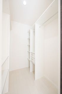 お出かけ準備が楽になる、玄関そばの納戸。 コートクロークや可動式棚が、収納の幅を広げます。